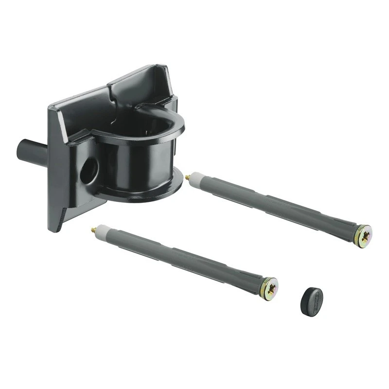 Présenter la fixation murale complète avec douilles et marquer les trous. Percer en diamètre 10 mm sur 140 mm de profondeur. Ensuite percer en diamètre de 16 mm sur 35 mm de profondeur.