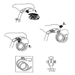 Cette attache de la marque ABUS permet le transport des sacoches et antivols à cùbles aux rails de la selle du vélo.
