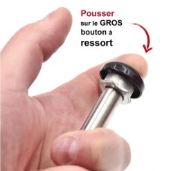 Axe Ă dĂ©montage rapide en Inox. Diamètre 12,7 mm ou 1/2 pouce. L’axe est surmontĂ© d’un gros bouton poussoir montĂ© sur ressort permettant Un dĂ©montage rapide des roues pour fauteuil roulant.