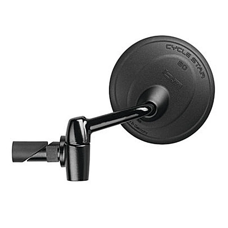 Le rétroviseur Cyclestar 80 903/7 de la marque Busch and Muller est composé d’une tige en acier avec un boitier en plastique robuste et un miroir de forme ronde et convexe de 8 cm de diamètre. Il offre une excellente visibilité avec un angle de vision plus large de 75 % face aux autres modèles de la série Cyclestar.