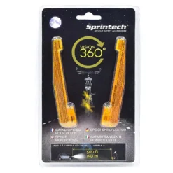 Catadioptre de roue Sprintech Vision 360est le premier catadioptre pour vĂ©lo qui reflĂšte la lumiĂšre vers l’arriĂšre avec un effet lumineux rotatif 360.