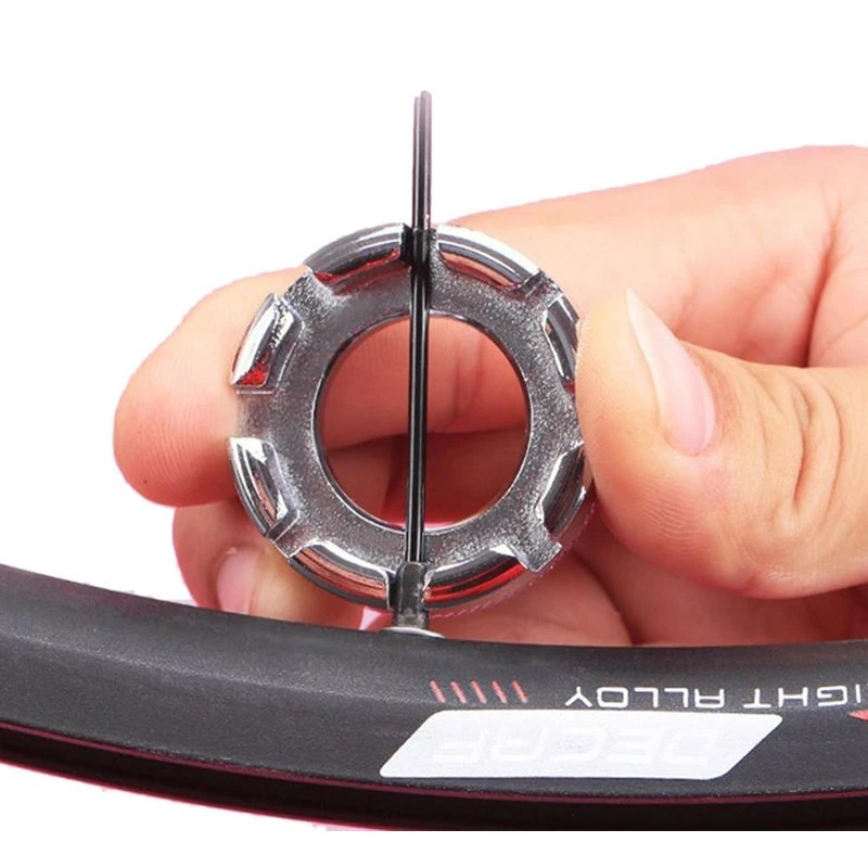 Clé a rayons universelle indispensable pour les différentes tailles de rayons jauges de 10,11,12,13,14,15 correspondant aux diverses tailles des écrous de rayons que l’on trouve sur les différents type de vélos.