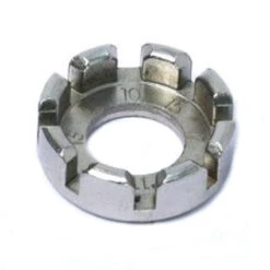 La clé de rayons possède toujours une encoche en face de l’écrou a serrer afin de pouvoir serrer l’écrou bien dans son axe.