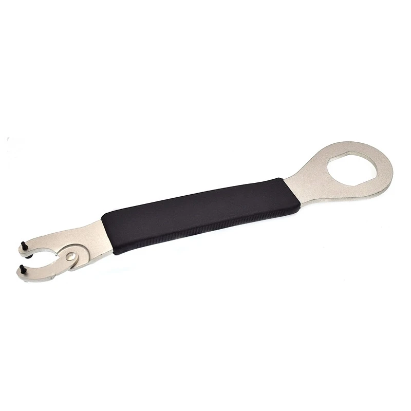ClĂ© pour 2 utilisations. Le cĂ´tĂ© avec les 2 ergots de la clĂ© vous permettront de dĂ©monter ou remonter une roue libre. L’autre cĂ´tĂ© vous permettra de dĂ©monter les roulements d’un boitier de pĂ©dalier de 36 mm.