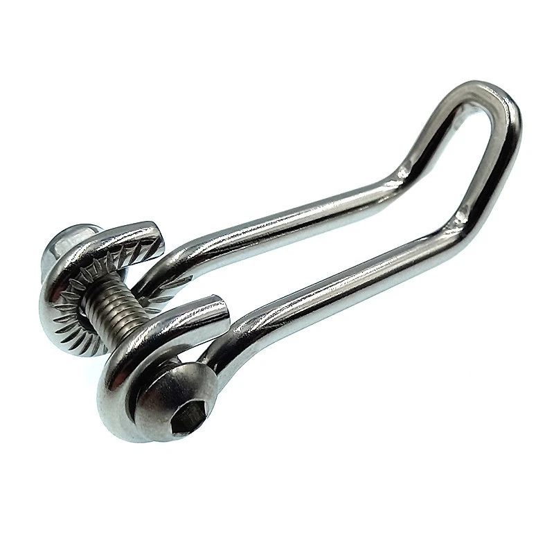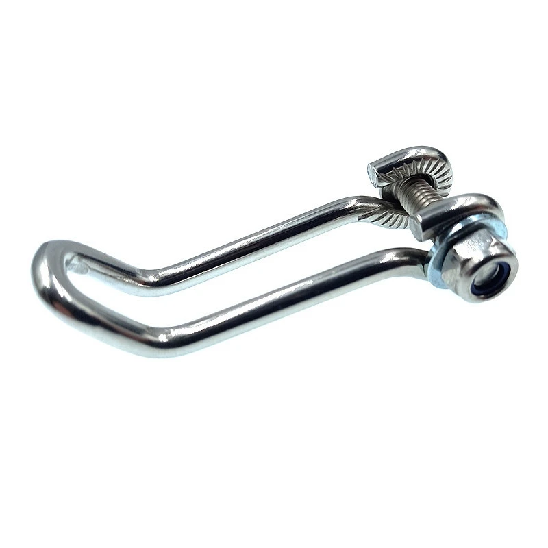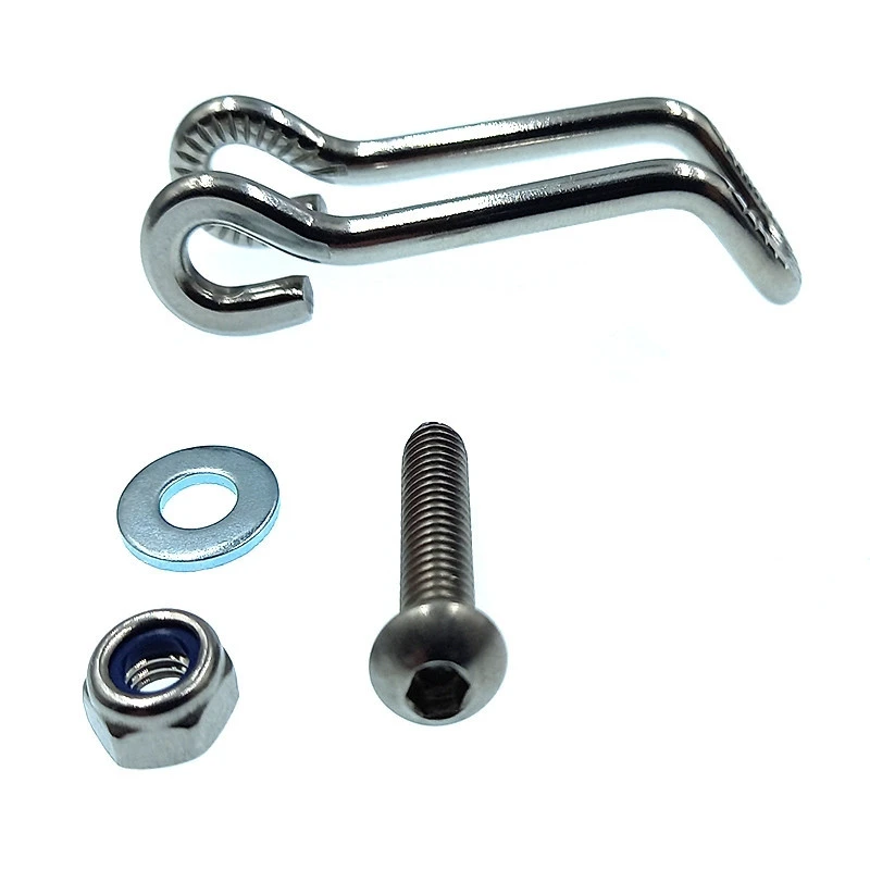 Cette fixation en acier inoxydable permet d’installer un feu avant sur la fourche du vĂ©lo. cette patte robuste est fournie avec une vis inoxydable, un Ă©crou frein, et deux rondelles inoxydables pour le montage du phare sur le support.