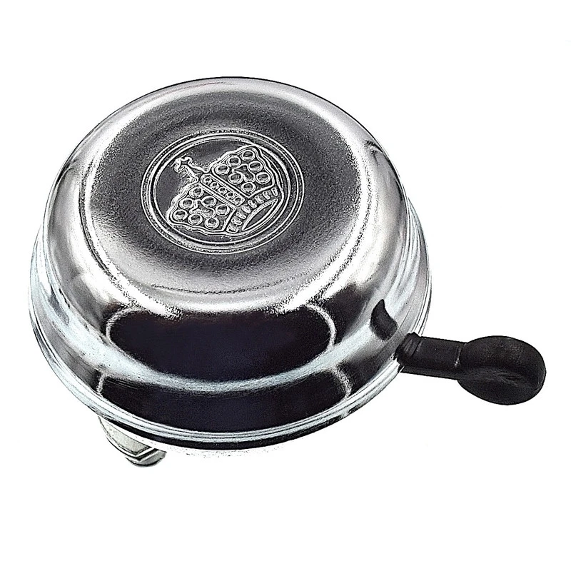 Très solide, cette sonnette argentée de style vintage est entièrement en métal, son dôme est recouvert d’une gravure de couronne.