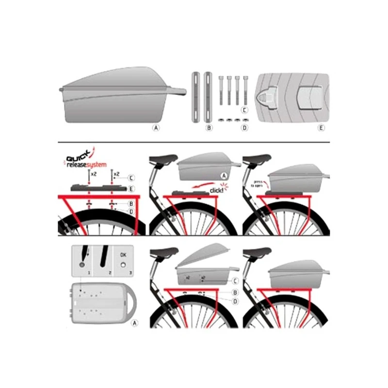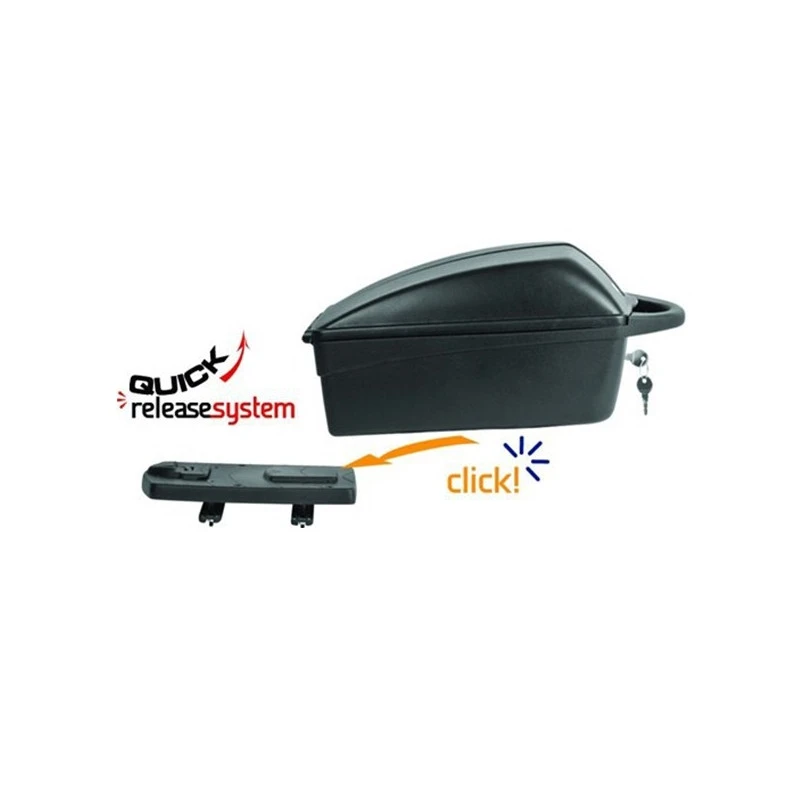 Ce top case amovible pour vĂ©lo offre une grande capacitĂ© de rangement pour un casque, antivol, outils, vĂŞtements, tĂ©lĂ©phone … Ce top case en plastique noir dispose d’un volume de 12 litres. Ce top case vĂ©lo se fixe sur votre porte-bagage de vĂ©lo grâce Ă sa plaque de fixation Quick release fourni.