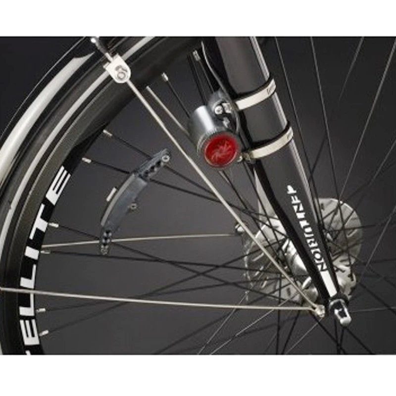 L’Ă©clairage de signalisation arrière SL 520 de la marque Reelight est composĂ© d’un feu arrière qui se fixant sur le guidon, un gĂ©nĂ©rateur qui se monte sur la fourche avant Ă l’aide de 2 aimants pour une fixation rapide sur les rayons du vĂ©lo. Facile Ă mettre en place et très discret, le feu arrière et le gĂ©nĂ©rateur sont reliĂ©s par un câble noir de petit diamètre facilement dissimulable.
