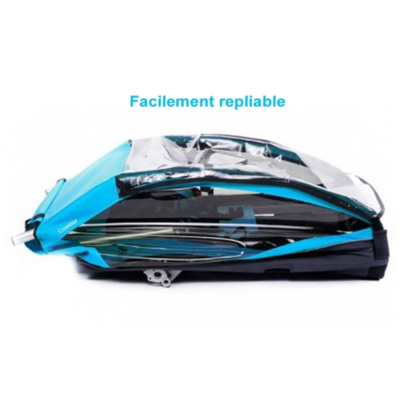 Son cadre fabriquĂ© en aluminium et surmontĂ© par une toile Ă©tanche pour les faibles pluies, la remorque est destinĂ©e aux transports de 2 jeunes enfants pour un poids maxi de 45 kg. La remorque Chariot Coaster offre de nombreux avantages tels que des sièges confortables, un protège soleil, vent et pluie ainsi qu’un guidon adaptable sur diffĂ©rentes inclinaisons.