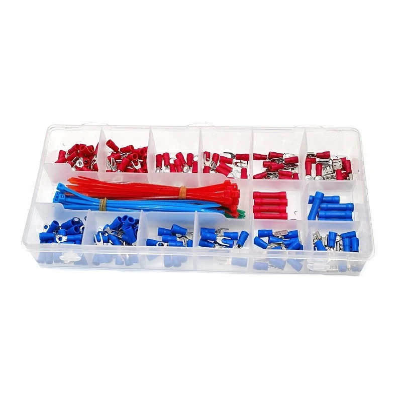 L’ensemble de ce coffret comprend des attaches, piques mâles et femelles, œillets et cosses pour épissures (1,5 et 2,5 mm).