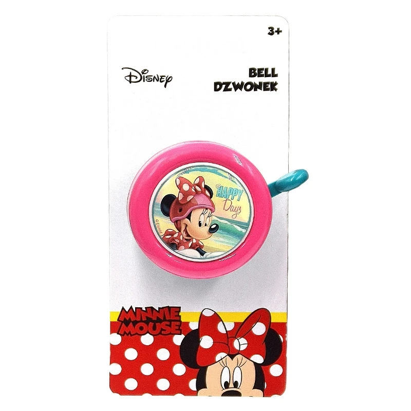 Cette sonnette de vĂ©lo pour enfant dispose d’un dĂ´me en acier vernis rose de 55 mm avec la jolie petite Minnie de Disney pour dĂ©coration .
