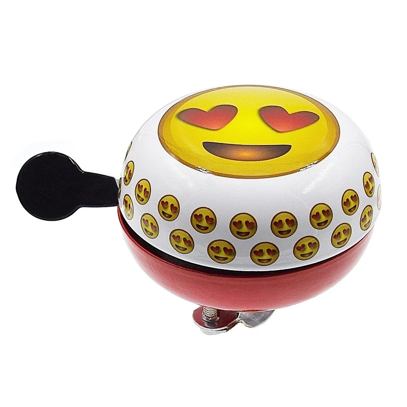 Cette sonnette de vĂ©lo avec dĂ´me en acier de 80 mm recouverte d’un smiley aux yeux amoureux se fixe sur les cintres de vĂ©lo disposant d’un diamètre de 22.2 mm.