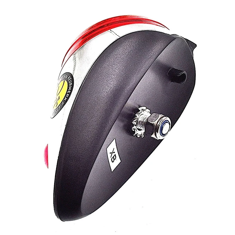 Le feu se positionne sur le garde-boue arrière du vélo au moyen d’une tige filetée avec écrou et rondelle fournis, il est alimenté à par 2 piles LR03 inclus. Un indicateur présent au dessus de l’interrupteur indique l’état de charge des piles.