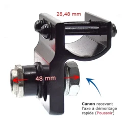 Facile à mettre en place sur des tubes de 28,48 mm de diamÚtre, cette fixation de roue est livrée avec 2 vis, 2 rondelles et 2 écrous nylstop